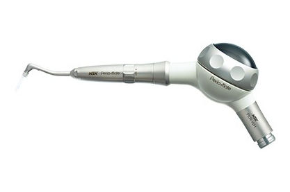 Perio-Mate stosuje się w leczeniu kieszonek przyzębnych i zapalenia tkanek okołowszczepowych (periimplantitis). Nowatorski projekt końcówki oraz elastyczna nasadka nakładana na końcówkę dyszy pozwalają uniknąć urazów tkanek miękkich oraz powierzchni korzeni. Ultradrobny strumień wody i proszek Perio-Mate na bazie glicyny w urządzeniu Perio-Mate delikatnie usuwają biofilm z kieszonek przyzębnych w zaledwie 20 sekund. Dzięki wieloletniemu doświadczeniu w analizie dynamiki płynów, zdobytemu podczas opracowywania technologii turbin, firma NSK opracowała bezpieczną i niezwykle wydajną metodę natrysku ciśnieniowego, która umożliwia szybkie i precyzyjne usuwanie biofilmu płytki nazębnej z obszarów poddziąsłowych.